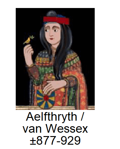 Alfred van Wessex Alfred koning van Wessex, geboren in Wantage [Dorset, England] im 849, gestorben (ungefähr 50 Jahre alt) am 28. Oktober 899, beerdigt in Winchester [Engeland] [Hyde Abbey] am 26. Oktober 901. Alfred koning van Wessex. https://en.wikipedia.org/wiki/Alfred_the_Great. heiratet (bzw. ungefähr 19 und ungefähr 16 Jahre alt) in Winchester [Engeland] im 868 mit Ealswyth of The Giani, geboren in Mercia [Engeland] etwa 852, gestorben (ungefähr 53 Jahre alt) in Winchester [Engeland] [St. Mary's Abbey] am 5. Dezember 905, beerdigt in Londen [Greater London, England] [Winchester Cathedral]. Ealswyth of The Giani. https://en.wikipedia.org/wiki/Ealhswith. Aus dieser Ehe ein Tochter: ![]()