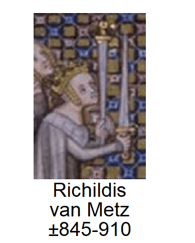 heiratet mit Richilde (Richildis , Richardis) van Arles , Tochter von Boso "de Oude" van Arles und Richeut van Arles, geboren im 825, gestorben (ungefähr 45 Jahre alt) im 870. Aus dieser Ehe 5 Kinder: ![]()