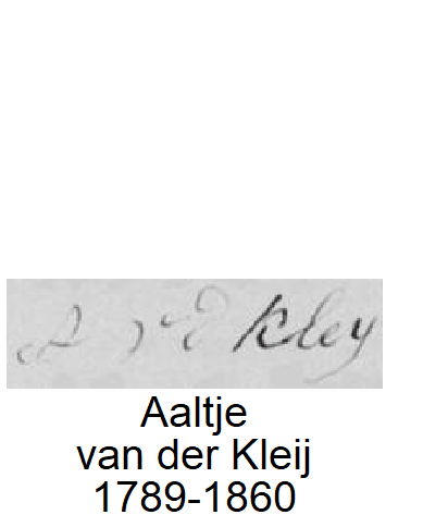 heiratet mit Pieter van der Kleij, Sohn von Adrianus van der Kleij und Aaltje Hoogenboom, geboren etwa 1766, gestorben (ungefähr 56 Jahre alt) in Hazerswoude am 9. November 1822. Aus dieser Ehe ein Tochter: ![]()