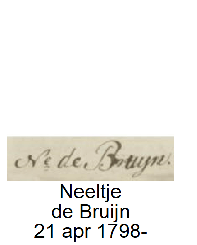 doopgetuige van haar kleinzoon Joannes de Bruijn te Wateringen op 16 januari 1803,